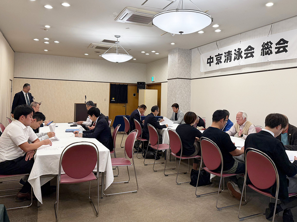 本日はご多忙の中、中京清泳会の総会にご出席いただき、誠にありがとうございます。中京大学ならびに中京大学附属中京高等学校水泳部のOB・OGが一堂に会する機会は、二年に一度ではありますが、こうして世代を超えて再会できることを大変嬉しく思います。